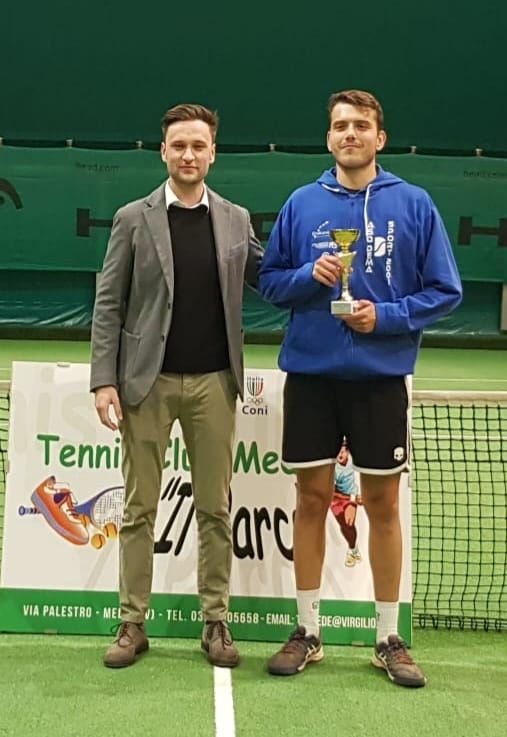 Anche nel maschile merita un plauso l’ Under16 Alessio Tuccitto, 4.6, del Selva Alta di Vigevano, che partito dal tabellone di qualificazione è arrivato, dopo quattro turni, ai quarti di finale dove, al termine di partita lunghissima e molto combattuta (42 35 70), ha dovuto arrendersi al più forte, maturo e quotato Tommaso Schena, 4.1 e testa di serie n° 2. In finale Maschile sono arrivati Marco Bernini, 4.2 e testa di serie n° 4, che in semifinale ha battuto il solidissimo Dante Vecchio, 4.3, del Tennis Mirabello, e Matteo Ferrari, 4.2 e testa di serie n° 3, che in semifinale ha avuto la meglio sul fortissimo Tommaso Schena, 4.1 e testa di serie n° 2, dello Sporting Club ASD. La vittoria è andata a Matteo Ferrari, con il punteggio di 42 42, al termine di una partita in cui ogni punto è stato ottenuto al termine di scambi lunghi, faticosi e spettacolari che suscitavano molta ammirazione e applausi fra il pubblico di appassionati presenti.